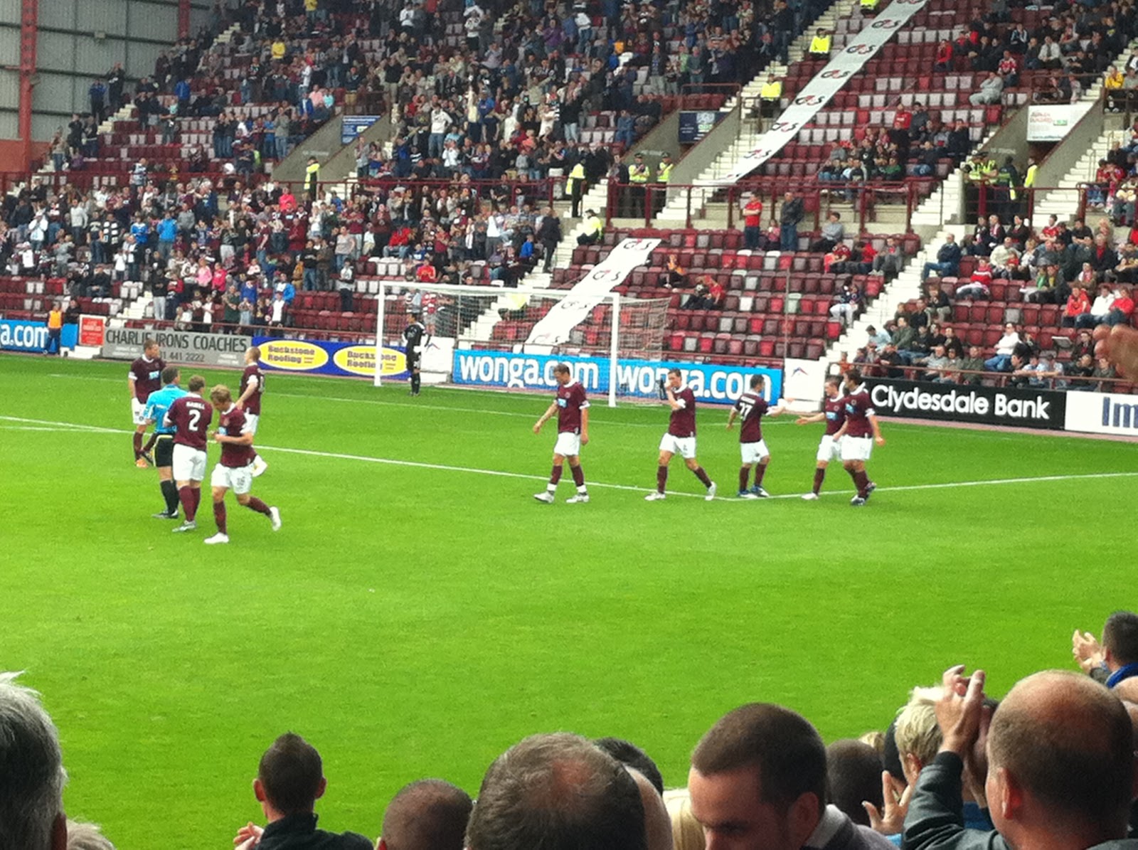 After a couple of pints and general outrage at the ease in which Ranger managed to obtain two penalties in there game at Inverness, we made our way down towards the stadium, headed of to our respective ends and watched a thoroughly enjoyable game...from a Hearts point of view anyway.